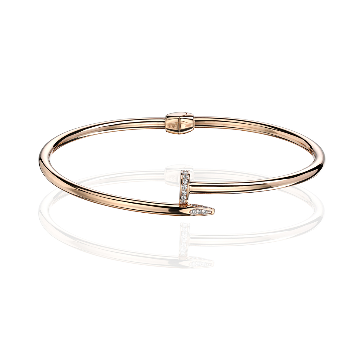 Браслеты пустотелые из красного золота 585 пробы с фианитом