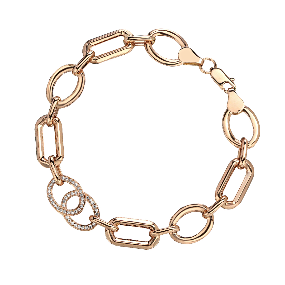 Браслеты пустотелые из красного золота 585 пробы с фианитом