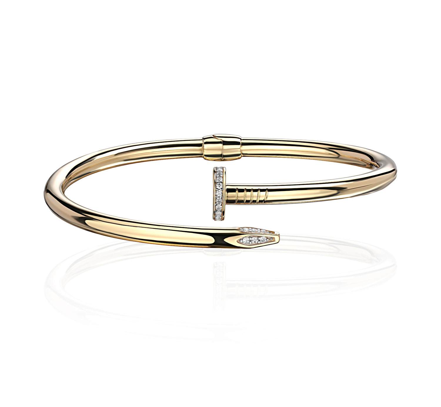 Браслеты пустотелые из желтого золота 585 пробы с фианитом