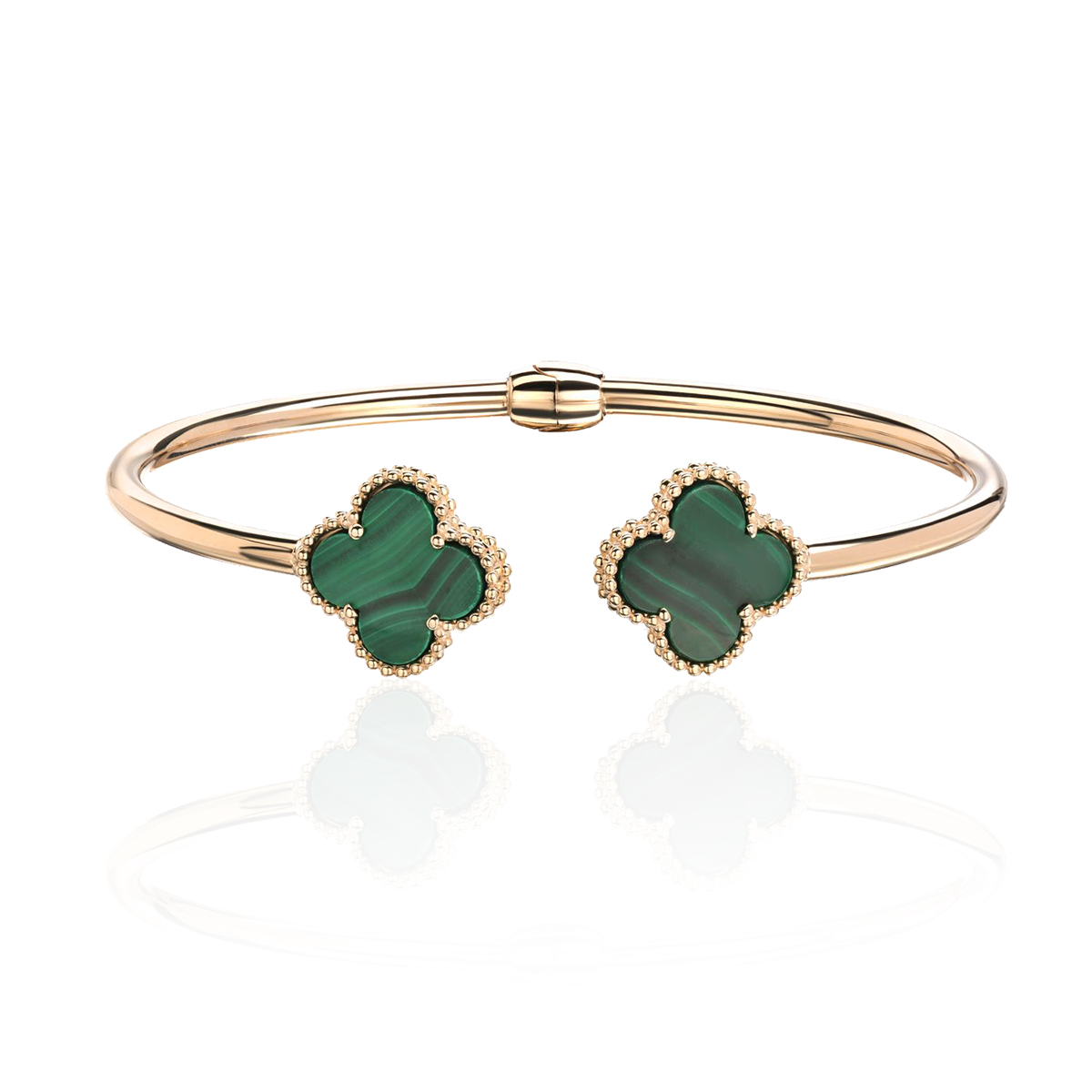 Браслеты пустотелые из красного золота 585 пробы с малахитом