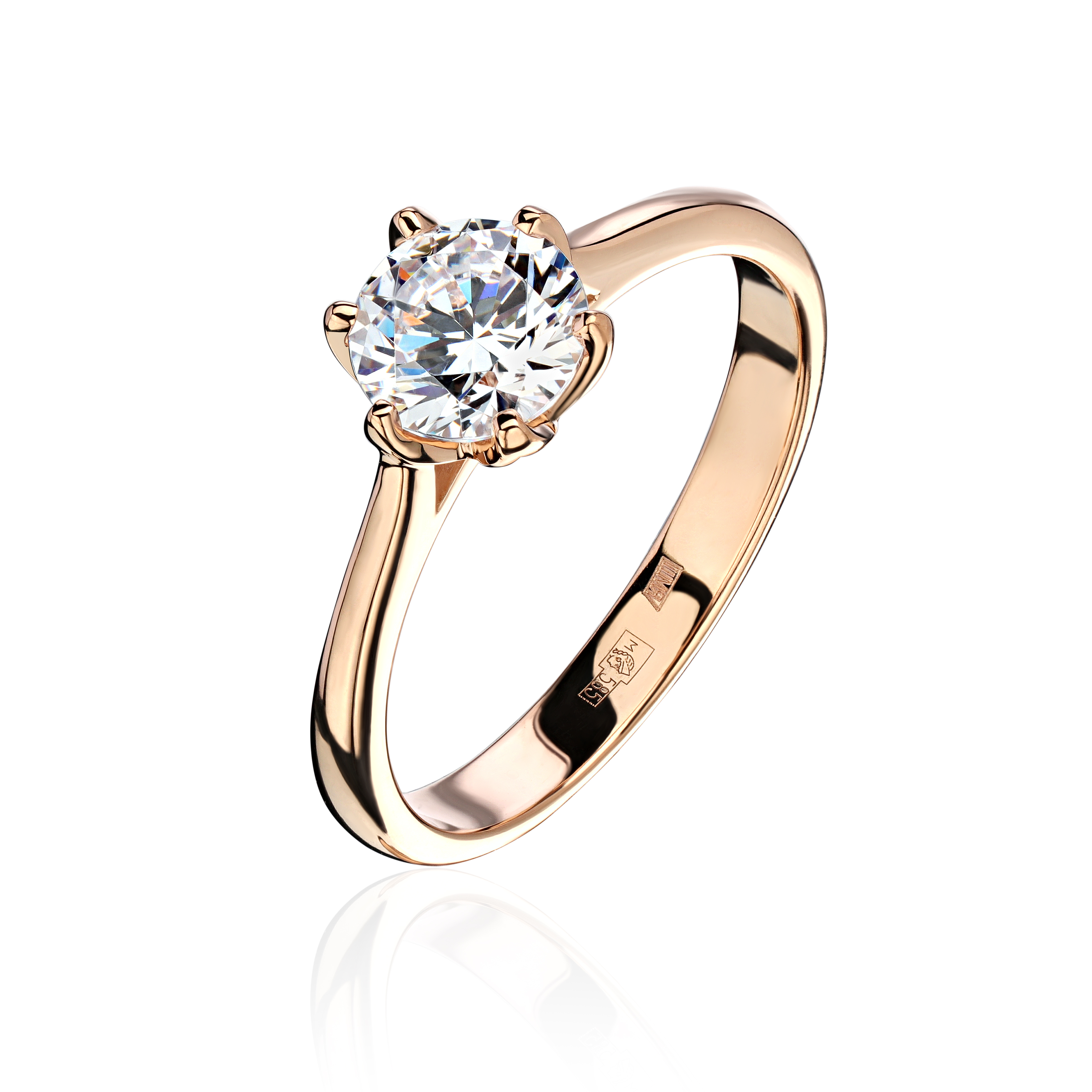 Кольцо из красного золота 585 пробы с фианитом