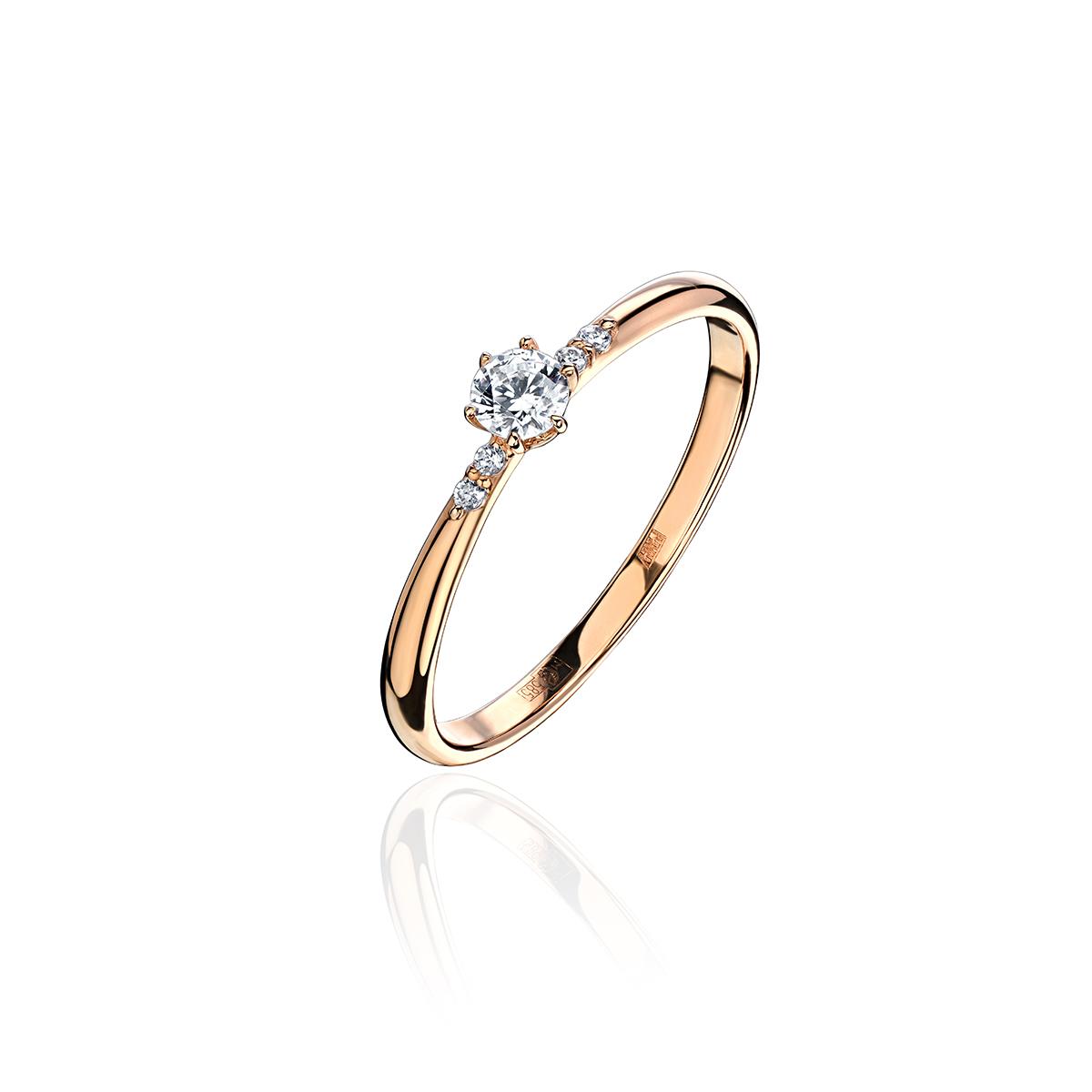 Кольцо из красного золота 585 пробы с фианитом