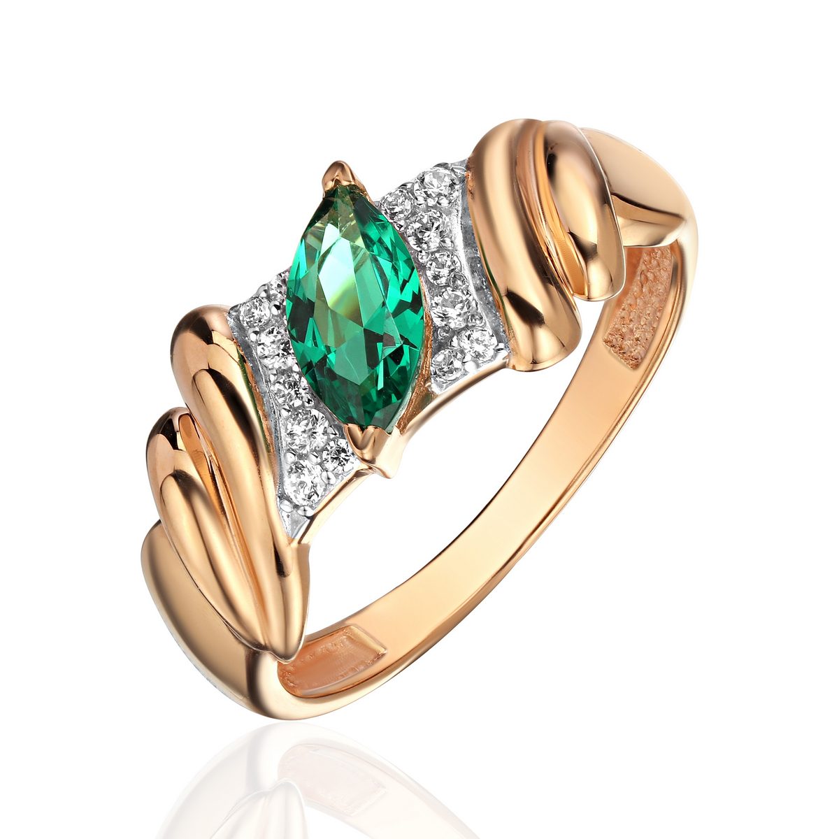 Кольцо из красного золота 585 пробы с наноизумрудом