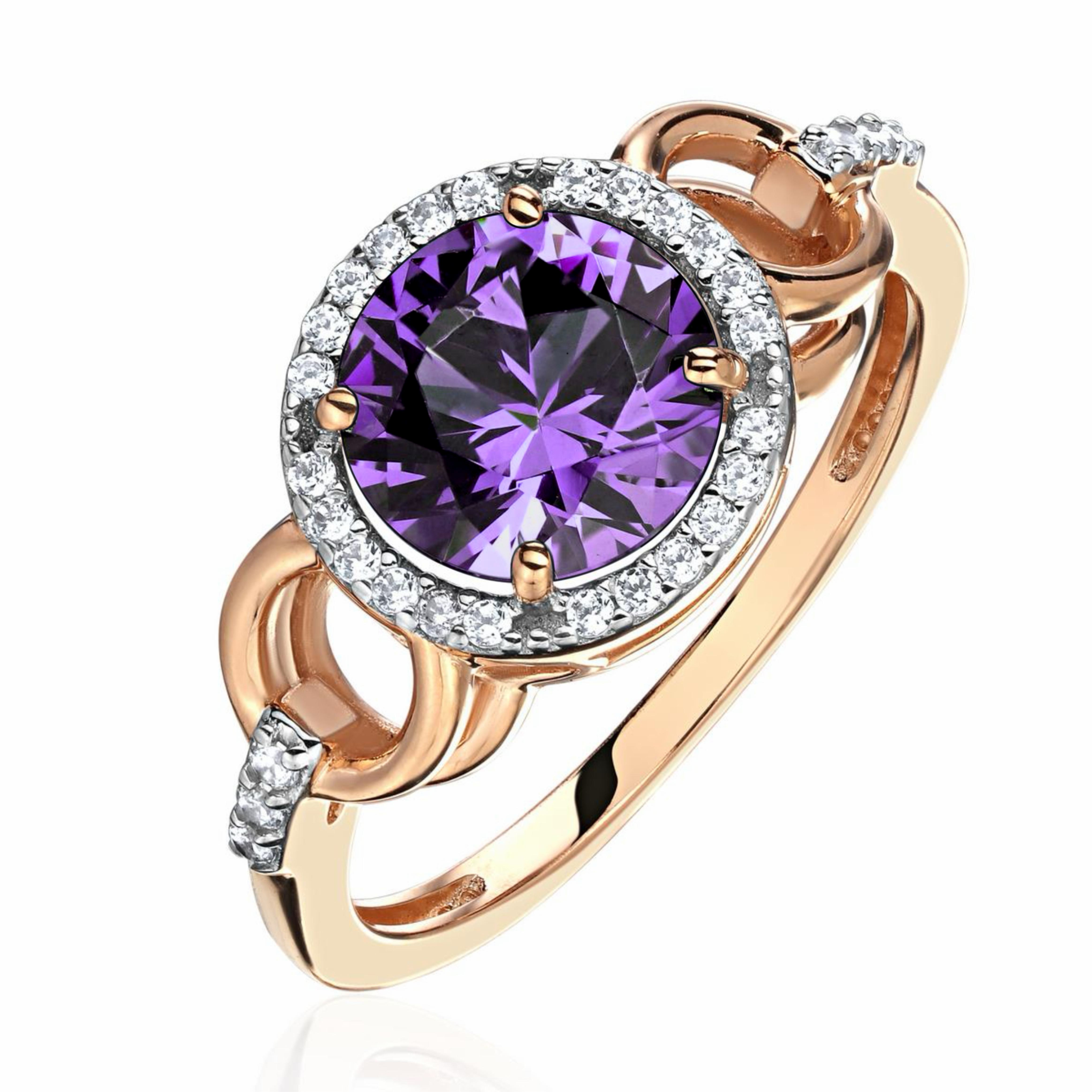 Кольцо из красного золота 585 пробы с аметистом