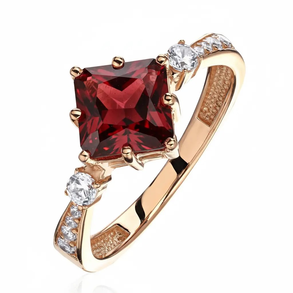 Кольцо из красного золота 585 пробы с гранатом