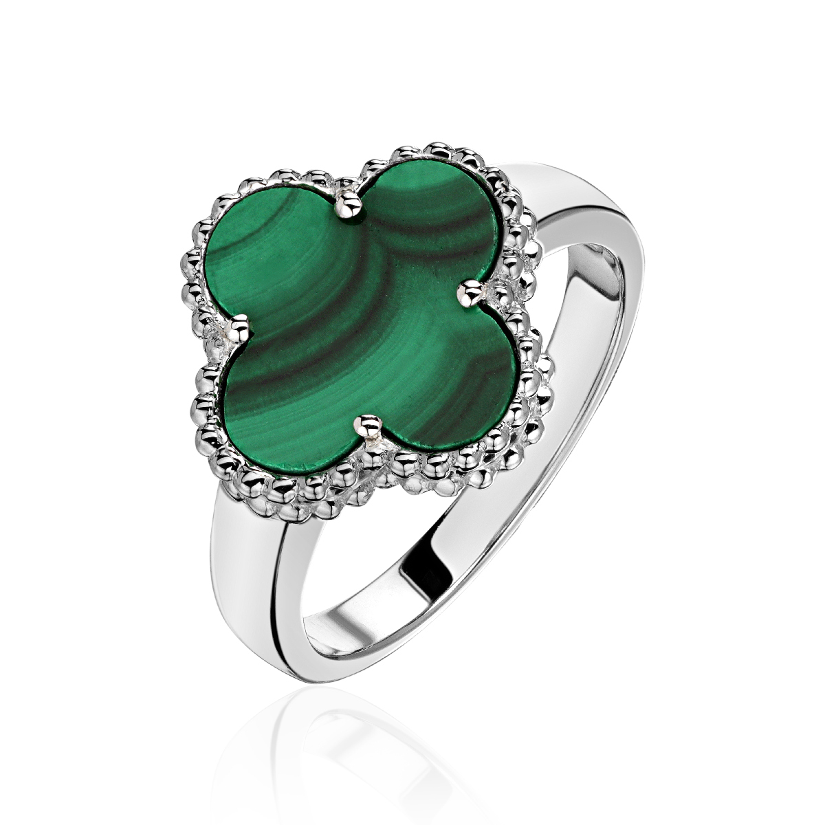 Кольцо из белого золота 585 пробы с малахитом