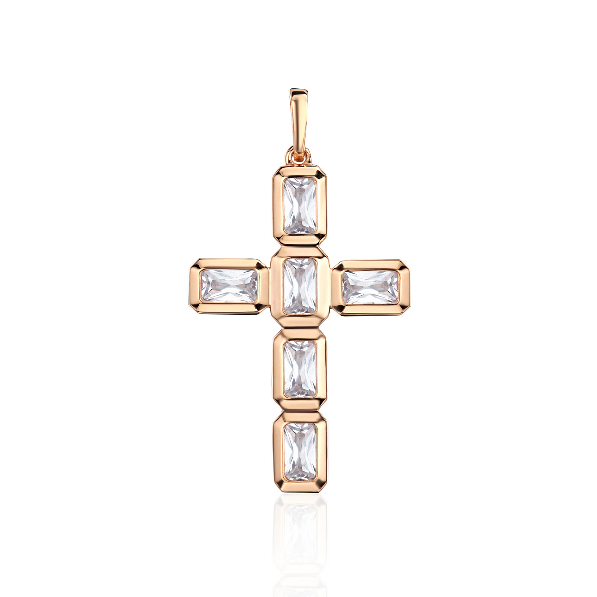 Крест из красного золота 585 пробы с фианитом