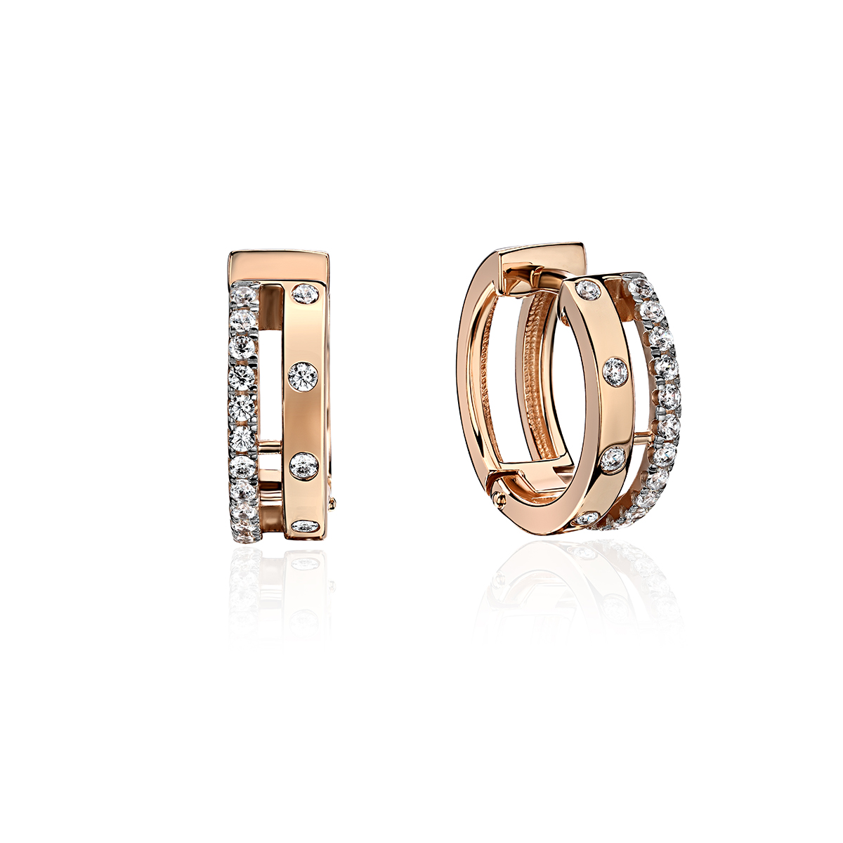 Серьги конго из красного золота 585 пробы с фианитом