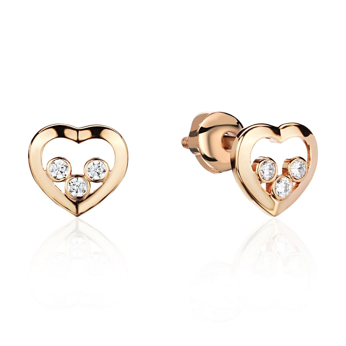 Пусеты из красного золота 375 пробы с фианитом