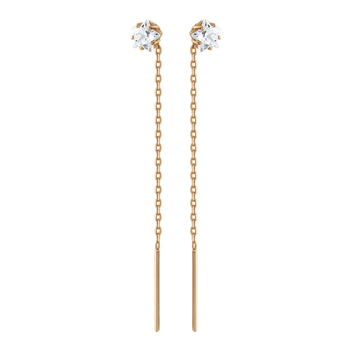 Серьги продёвки из красного золота 585 пробы с фианитом