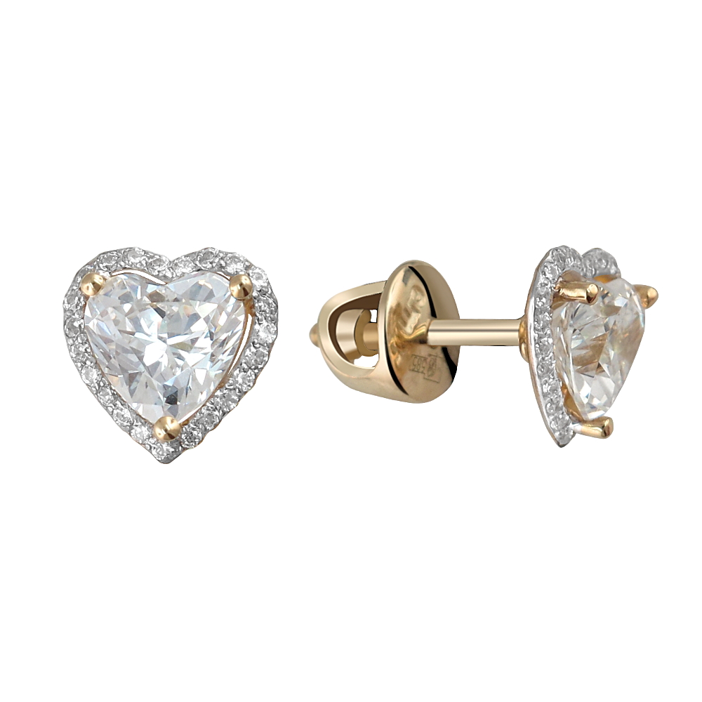 Пусеты из желтого золота 585 пробы с фианитом