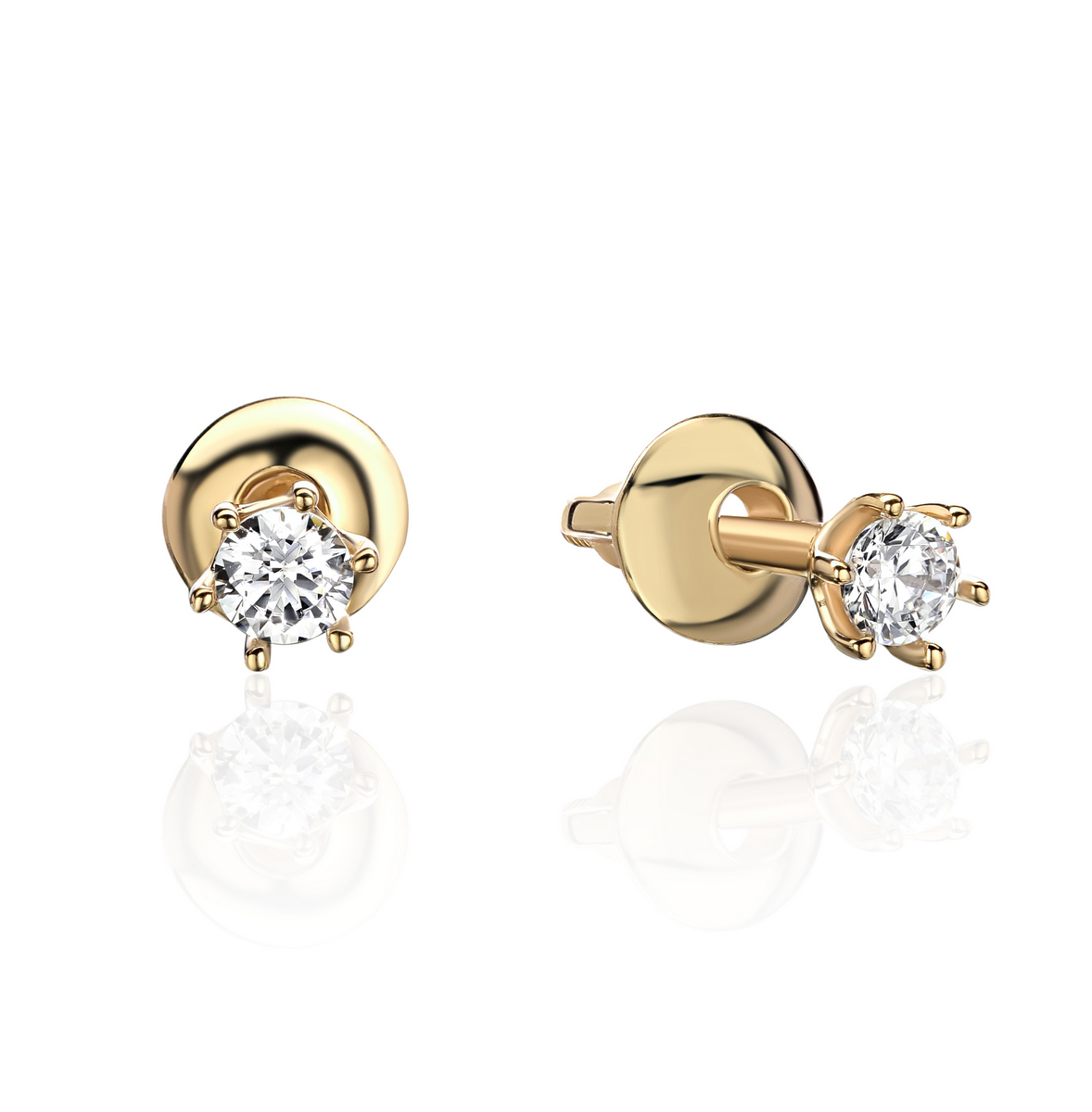 Пусеты из желтого золота 585 пробы с фианитом
