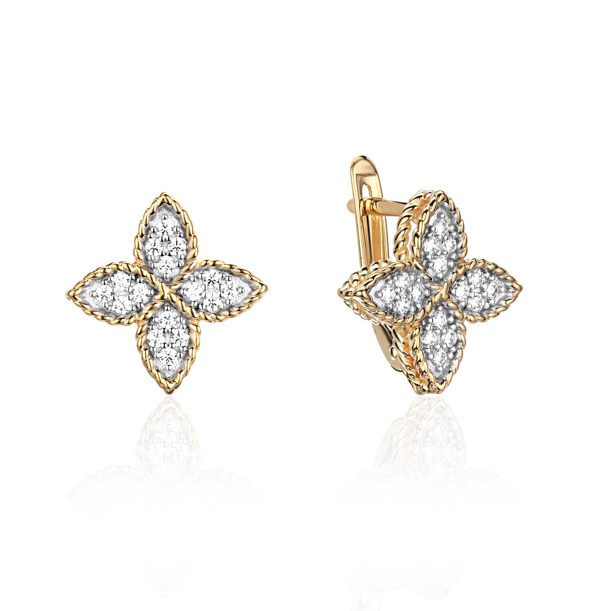 Серьги из желтого золота 585 пробы с фианитом
