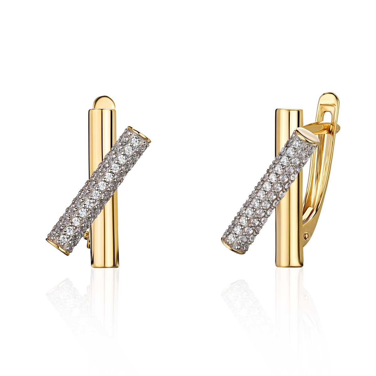 Серьги из желтого золота 585 пробы с фианитом