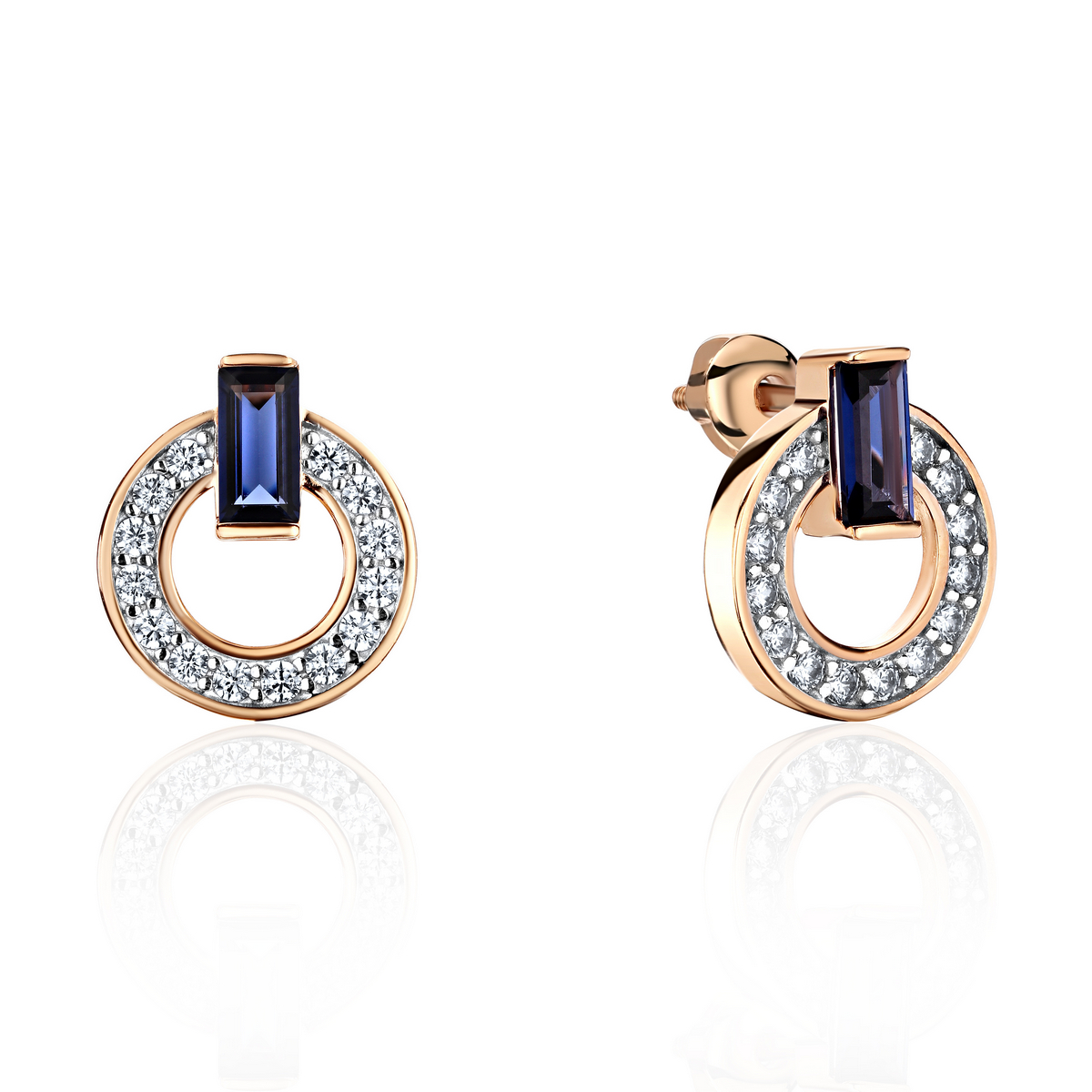 Пусеты из красного золота 585 пробы с наносапфиром