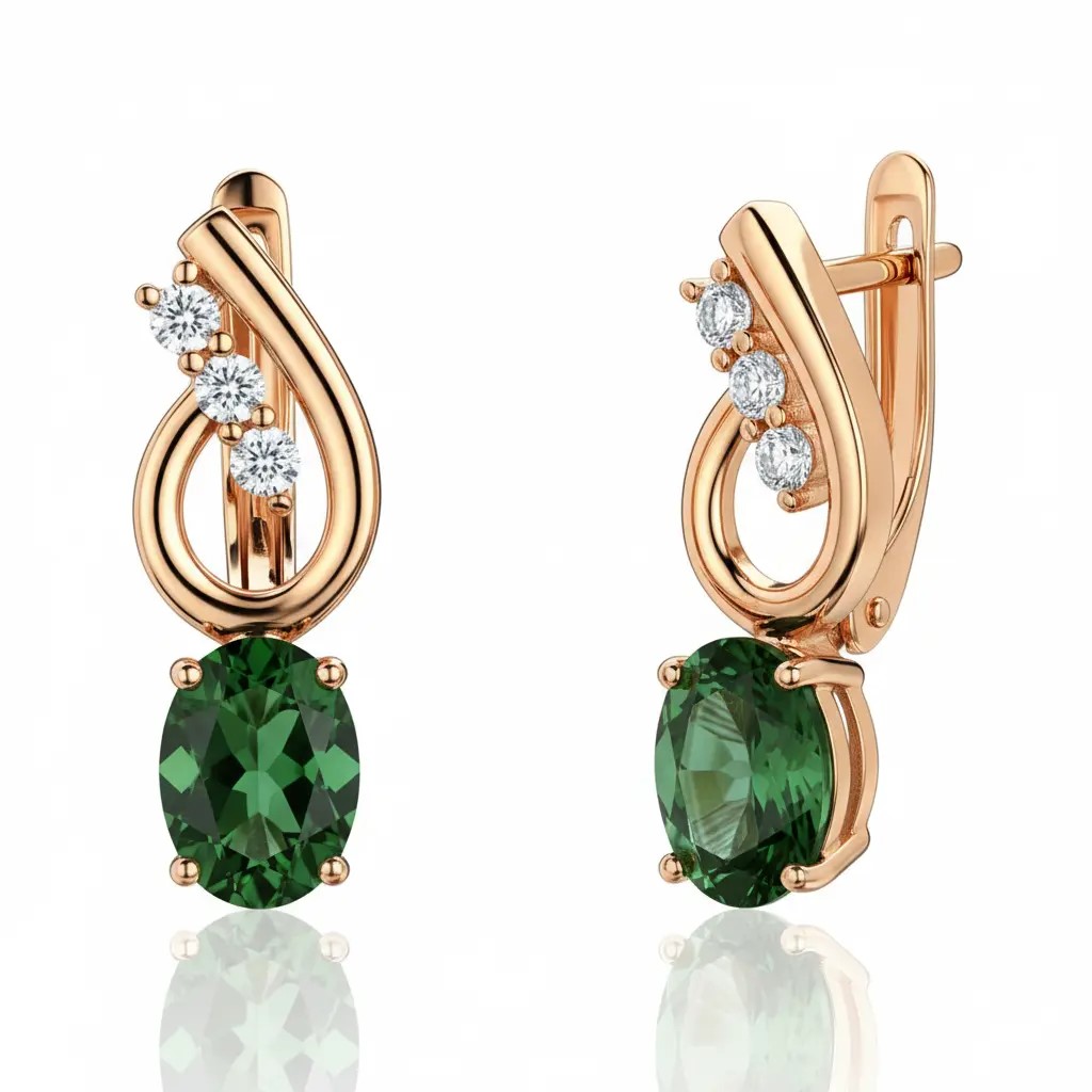 Серьги из красного золота 585 пробы с наноситалом