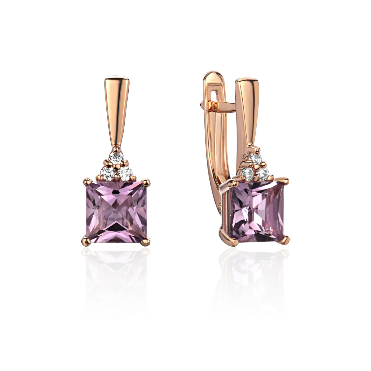 Серьги из красного золота 585 пробы с аметистом