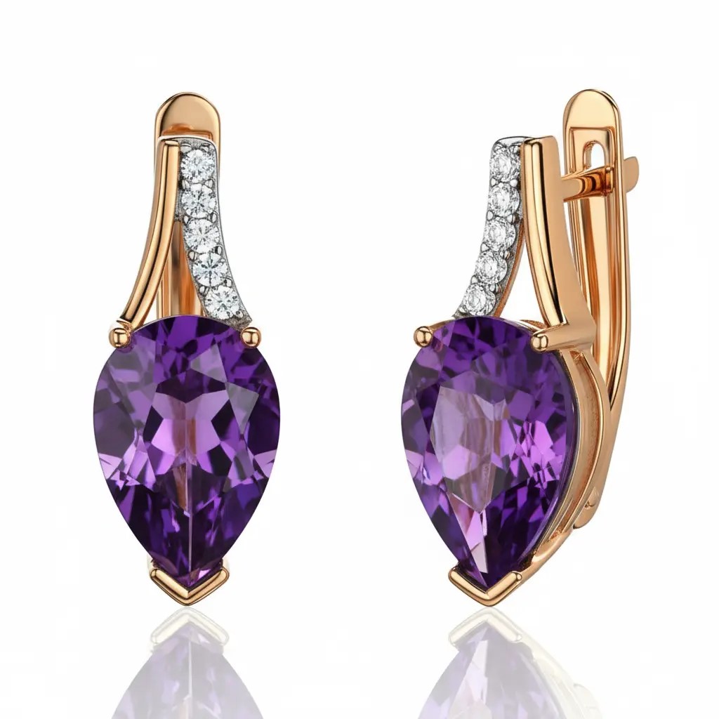 АМЕТИСТ ГРУША 0/0 2шт.,3.19ct 10*7*0 # ФИАНИТ КРУГ 0/0 10шт.,0.17ct 1.25*0*0