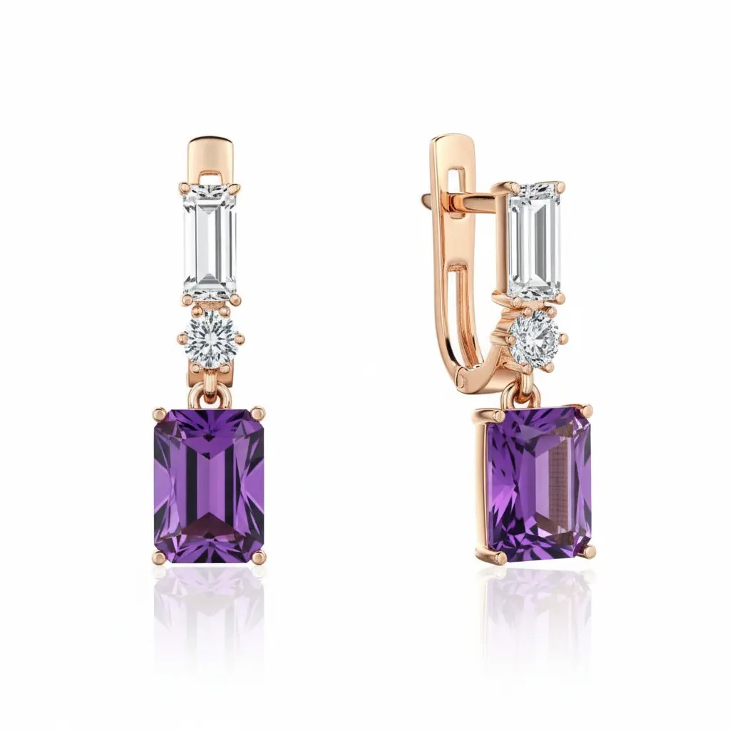 АМЕТИСТ ОКТАГОН 0/0 2шт.,2.78ct 8*6*0 # ФИАНИТ БАГЕТ 0/0 2шт.,1.1ct 6*3*0 # ФИАНИТ КРУГ 0/0 2шт.,0.41ct 3*0*0
