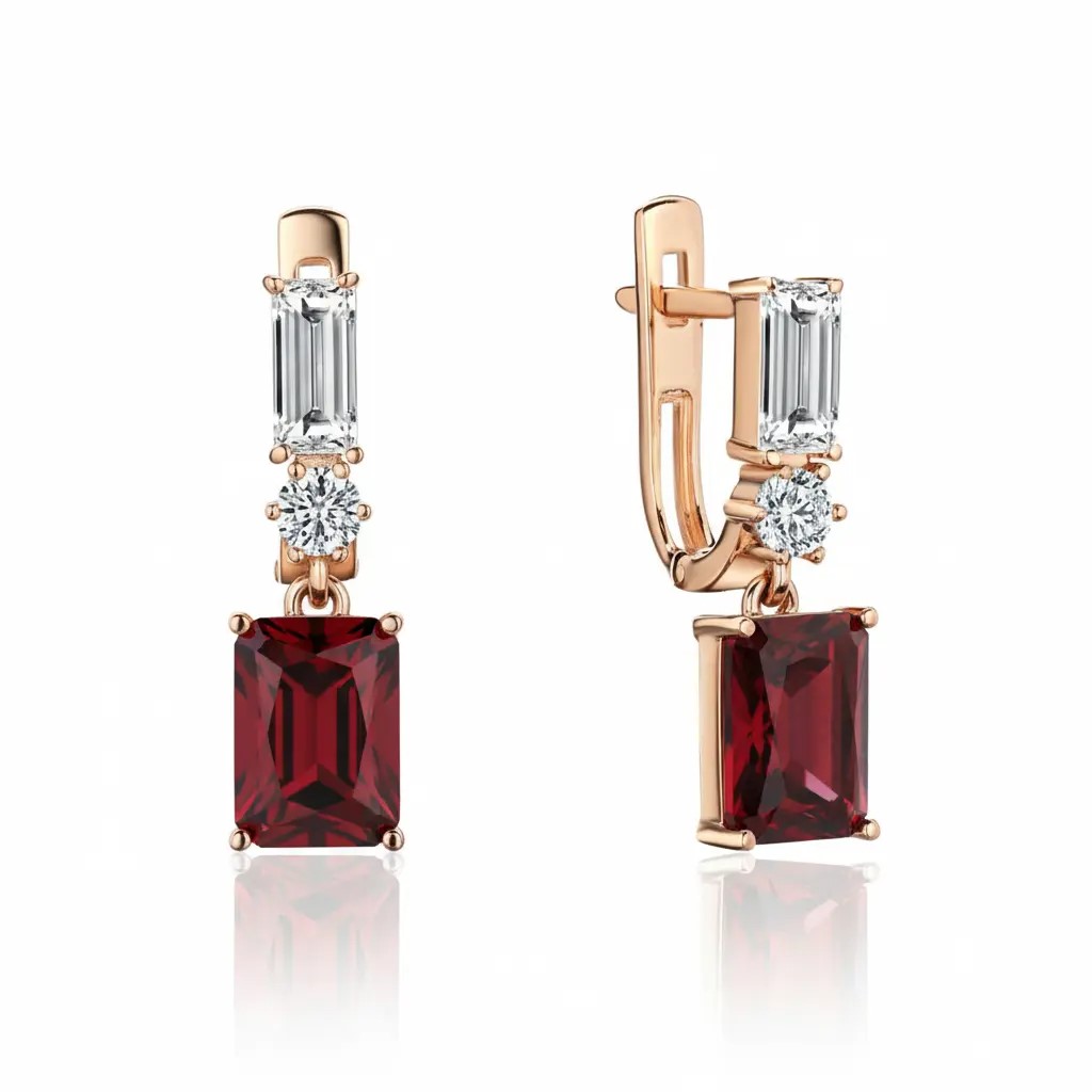 Серьги из красного золота 585 пробы с гранатом