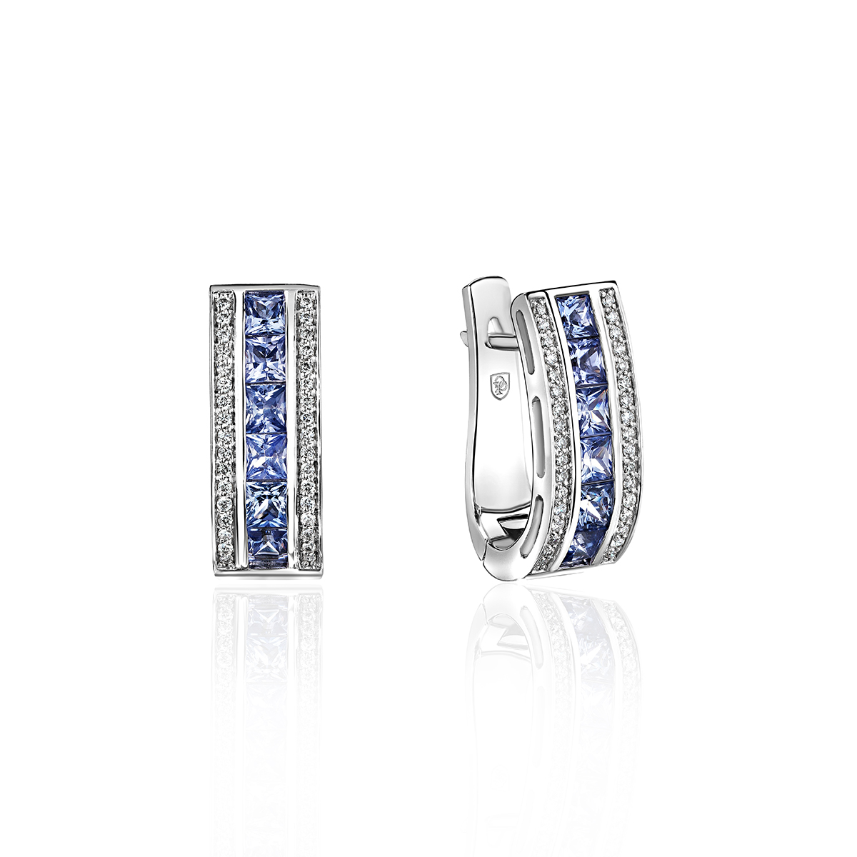 БРИЛЛИАНТ КР-57 4/5 68шт.,0.28ct # САПФИР ГОЛУБОЙ КВАДРАТ 0/0 12шт.,2.36ct 3*3*0