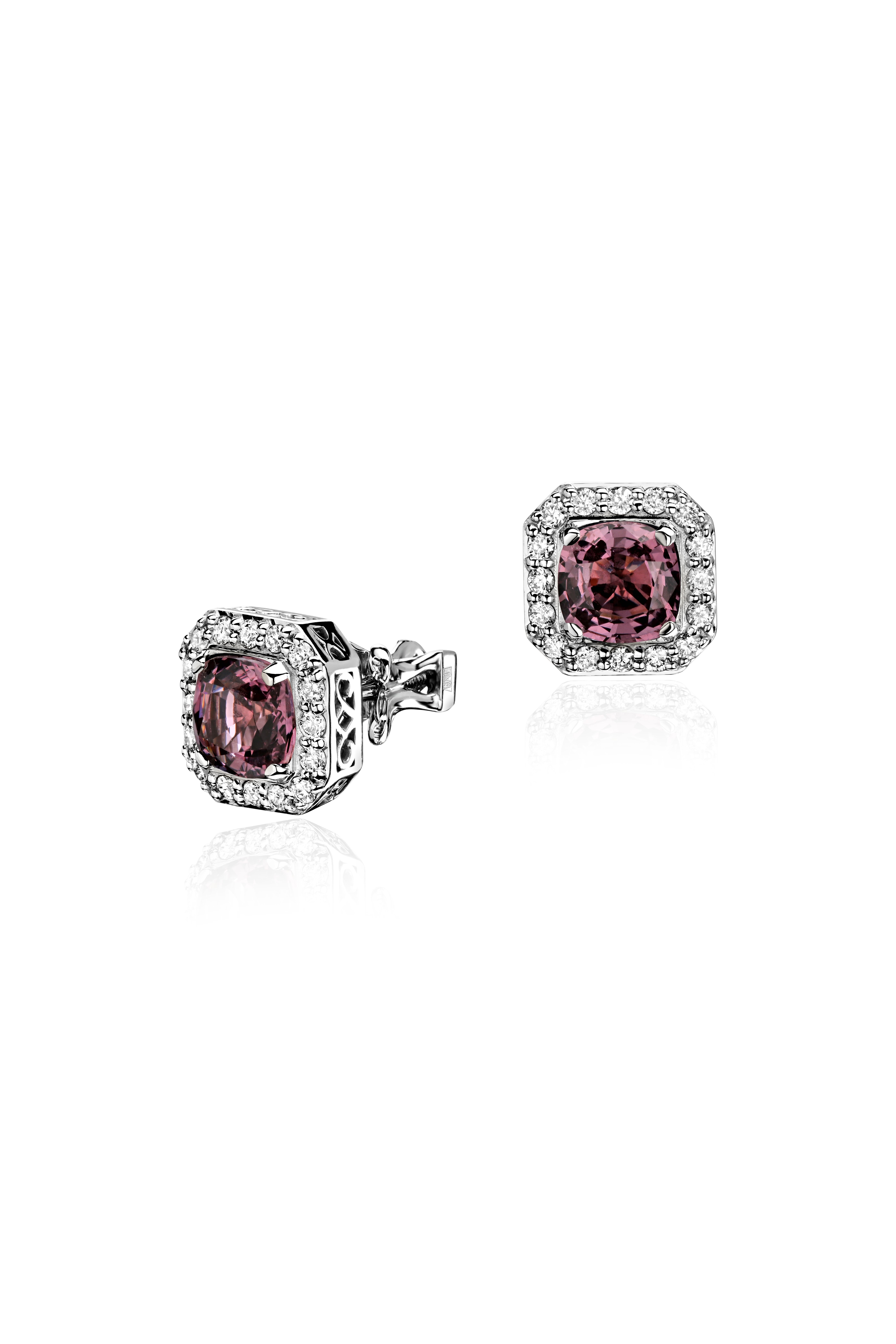 Пусеты из белого золота 585 пробы с бриллиантом