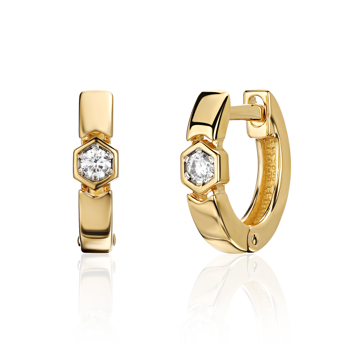 Серьги конго из желтого золота 585 пробы с бриллиантом